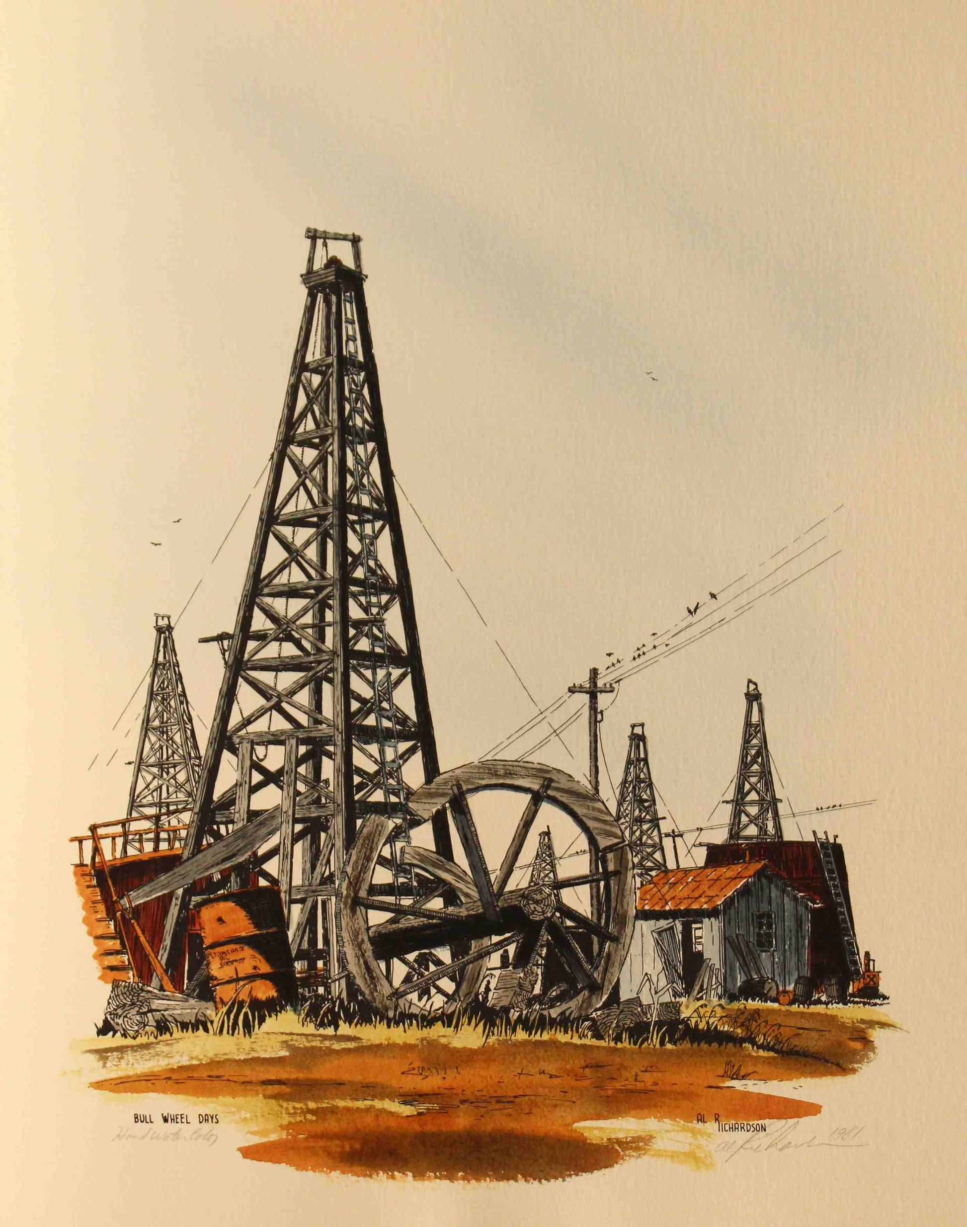 Bull Wheel Days (Colored) by Al Richardson – Honoring the Early Days of Oil Drilling